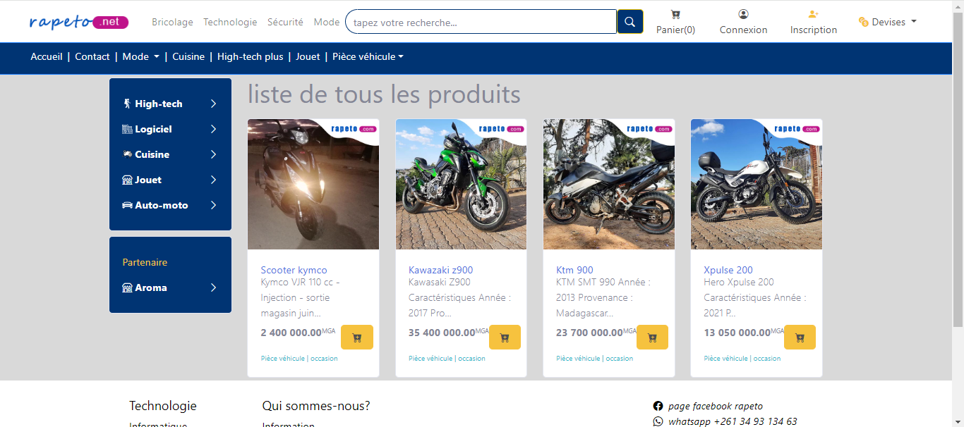 Rapeto.net, créé par Teko Consulting, une société spécialisée dans la développement web et mobile, est bien plus qu'un simple site de vente en ligne. Avec une interface conviviale et une navigation intuitive, cette plateforme révolutionnaire offre une gamme étendue de produits, couvrant toutes les catégories imaginables, de la technologie aux vêtements, en passant par l'automobile, la cuisine et bien plus encore. Teko et Actif sont des partenaires.